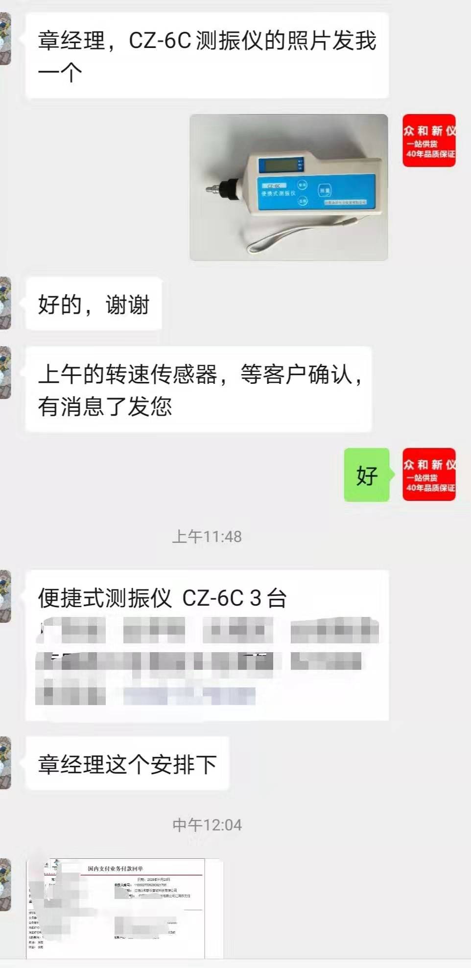 【眾和新儀】長(zhǎng)期合作客戶購(gòu)買CZ-6C便攜式測(cè)振儀就是省心