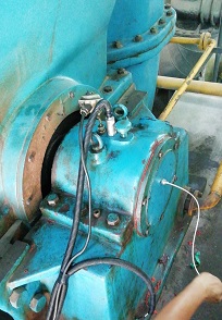 江陰眾和用戶購買的SZ-6G磁電式速度傳感器用來測量軸瓦振動,絕大多數(shù)都會用我們隨傳感器的配件,有雙頭螺紋的安裝螺釘固定,通過軸承蓋上的螺紋孔,直接安裝在需要測量的軸承蓋上。
